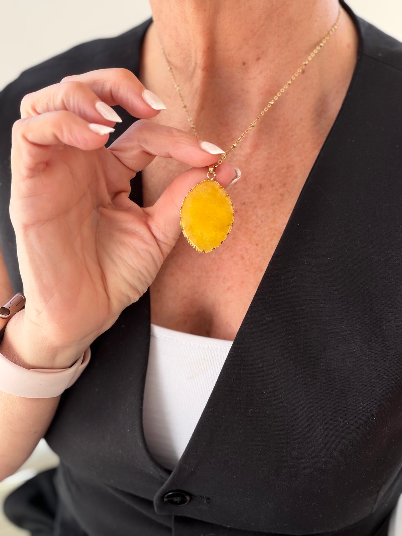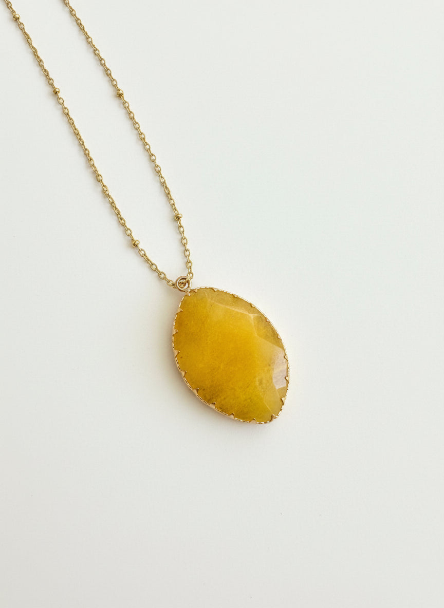 Piedra de ágata amarilla en cadena de acero quirúrgico hipoalergénico con baño de oro 24k