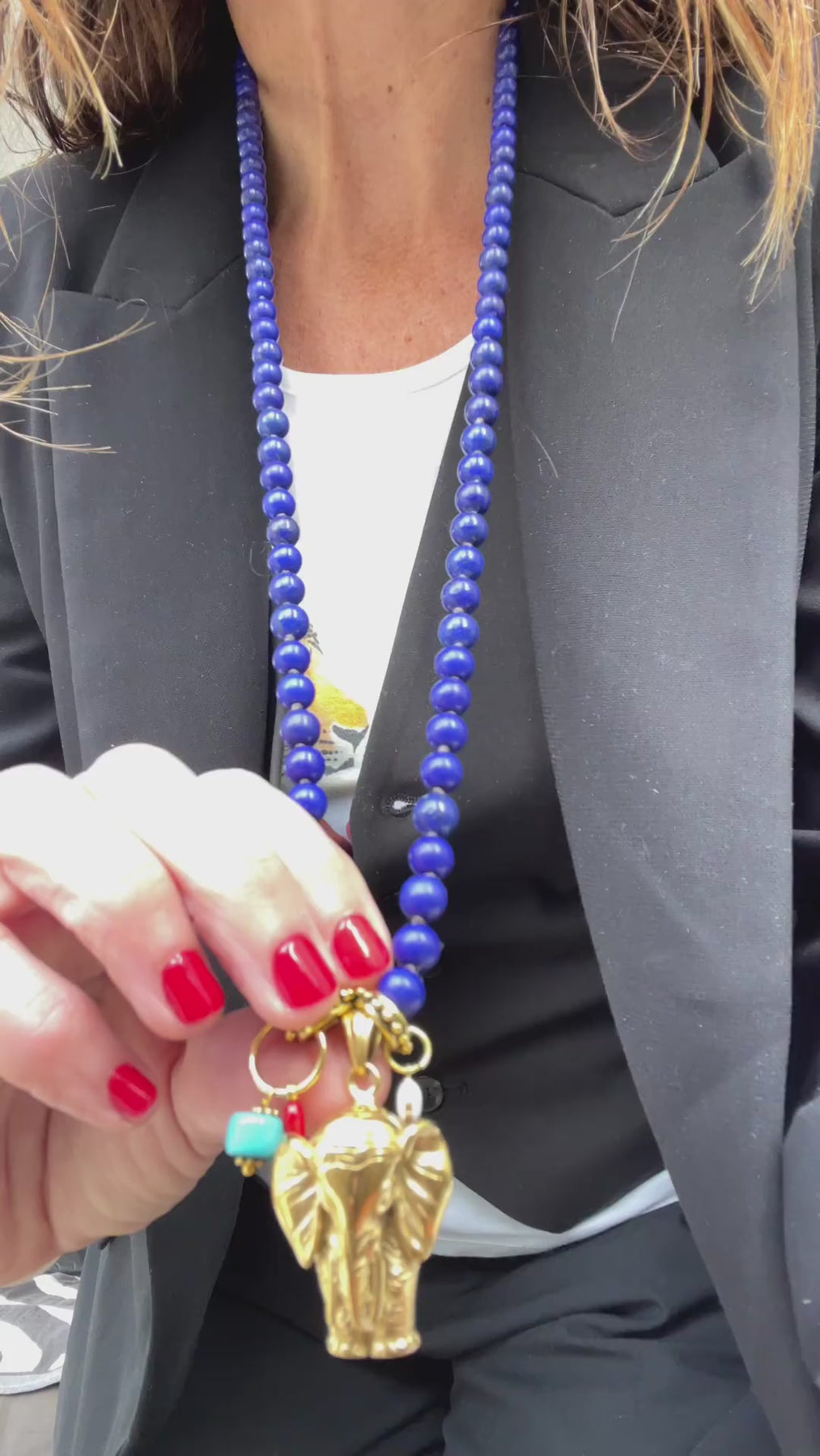 Collar elefante dorado macizo , piedras jaspe con color azulino, 8mm ,